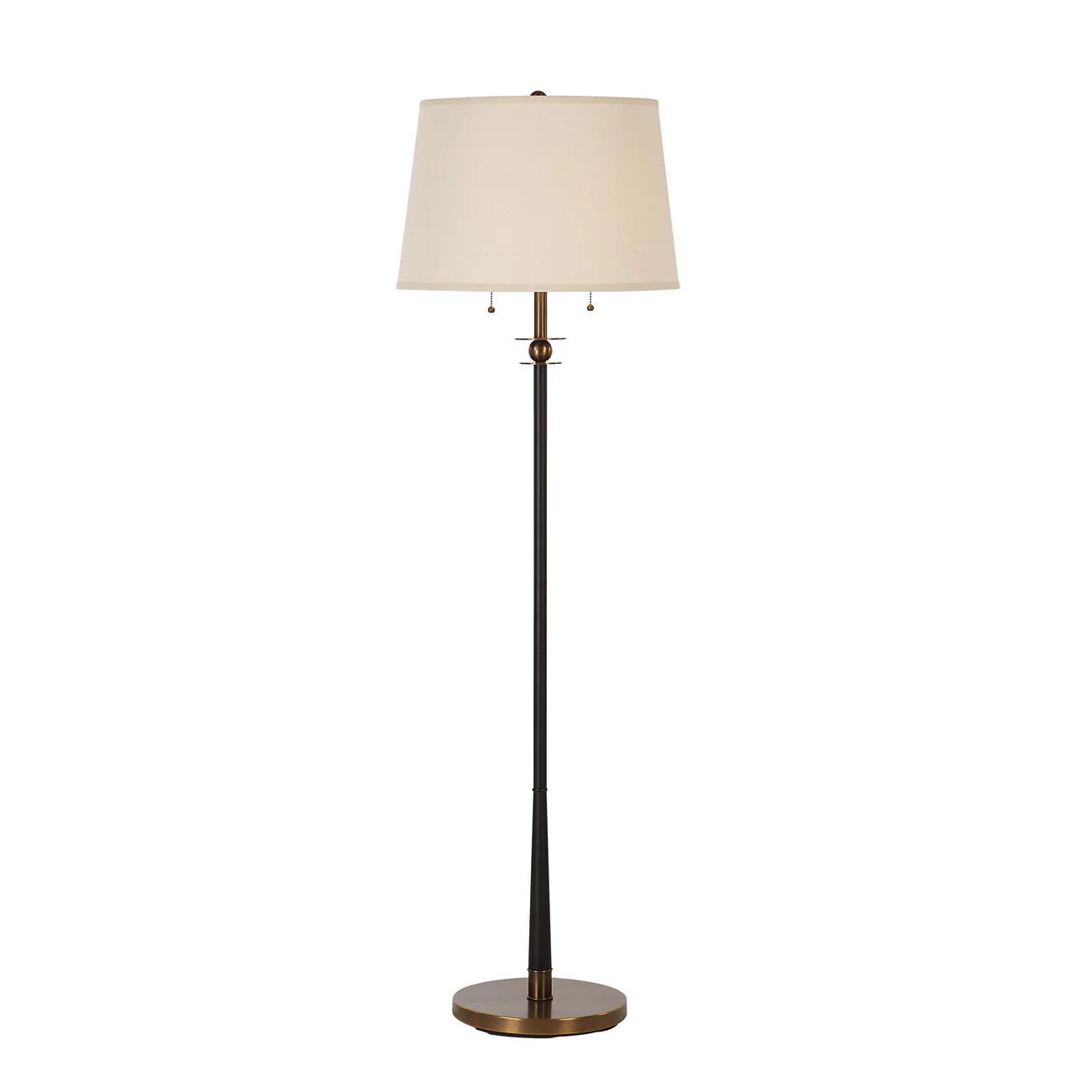 The handsome Alban floor lamp delivers a designer look that will easily compliment any decor. Crafted with traditional appeal, it features a mix of finishes like matte black and antique brass-plated iron for a stunning effect as a living room lamp or bedroom lamp. Topped off with a beige linen tapered drum shade, a simple tug of this light’s double pull chains is all it takes to illuminate any space in style.